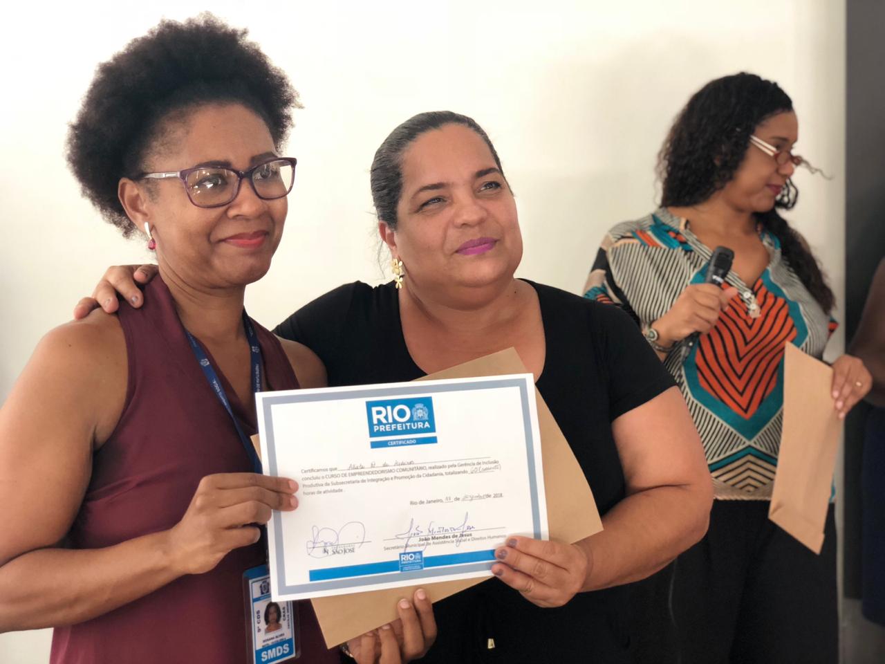 A turma da zona oeste do Rio recebeu das mãos do secretário da Assistência Social e Direitos Humanos, João Mendes de Jesus, o diploma do curso de empreendedorismo comunitário, na manhã de hoje, no Palácio Madureira. A cerimônia contou com a presença dos professores que ministram as aulas na Faculdade São José em parceria com o Sebrae, uma agente da Vigilância Sanitária, representando a subsecretária Márcia Rolim, a subsecretária Regina Santos, coordenadora de área e dos equipamentos da região, além dos familiares e amigos dos formandos.