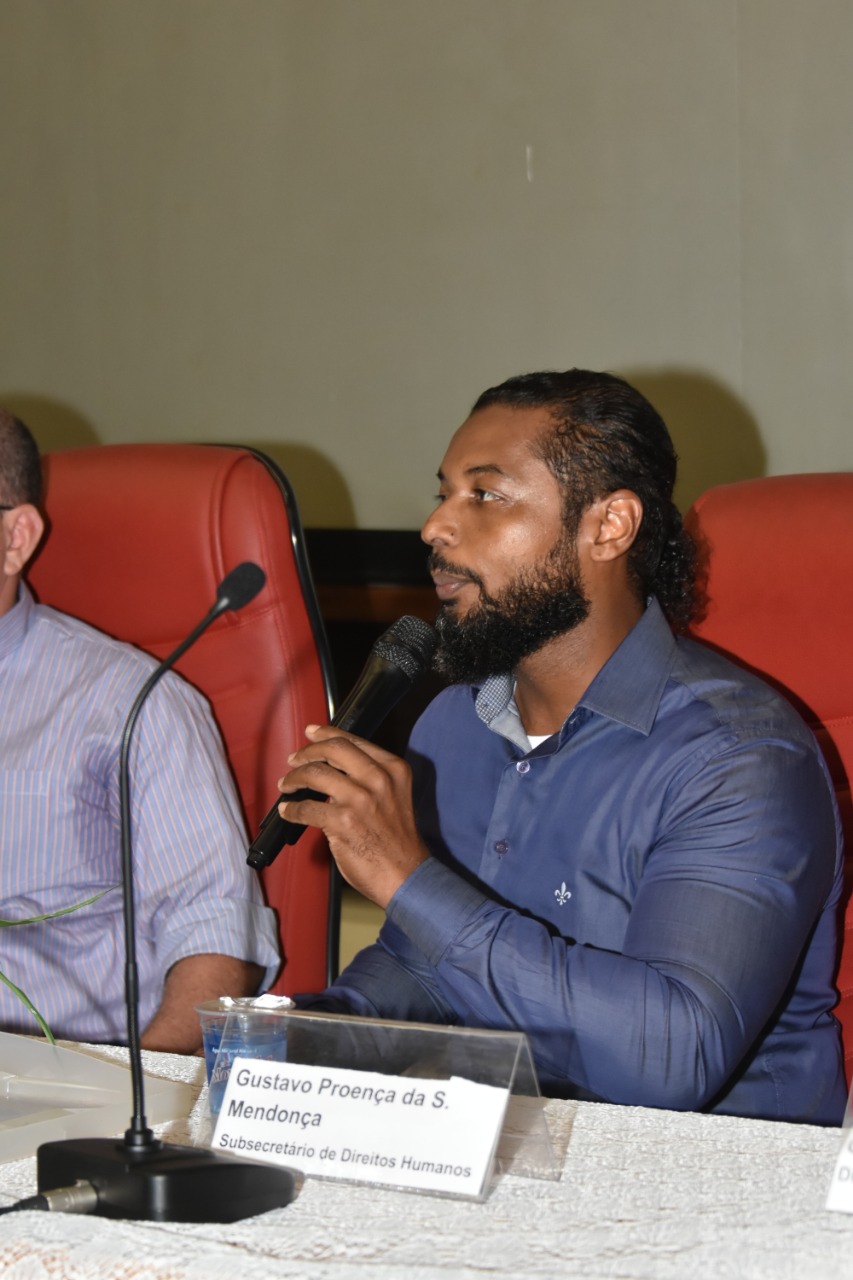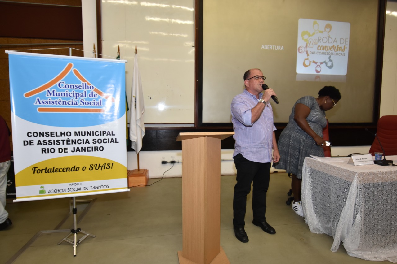 A mesa da 2ª Roda foi composta pela representante da 6ª CASDH, Simone Da S. Nascimento, o subsecretário municipal de Direitos Humanos, Gustavo Proença, o vice-presidente do CMAS, Orlando Inácio Xavier, e a assistente social do CMAS, Denise G. Marinho.