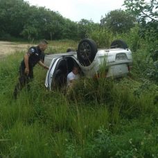 Guardas resgatam motorista de Uber que capotou veículo em Guaratiba