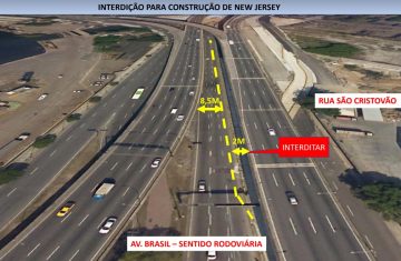 Publicado em 17/05/2023 - 09:03 | Atualizado em 25/02/2024 - 11:32A CET-Rio informa que, a partir das 12h desta quinta-feira (18/05), será efetuada interdição de dois metros da pista central da Avenida Brasil, no sentido Rodoviária, junto ao lado direito, a partir do pórtico de sinalização – PMV (Painel de Mensagens Variáveis), localizado após o acesso da pista lateral para a central, antes do cruzamento com a Rua São Cristóvão, que se estenderá até a Avenida Rodrigues Alves.