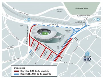 CET-Rio preparou esquema especial de trânsito para jogo no Maracanã - Marcos de Paula/ Prefeitura do Rio A Companhia de Engenharia de Tráfego do Rio de Janeiro (CET-Rio) realizará uma operação de trânsito na quarta-feira (22/04) para o jogo entre Flamengo e Vitória pela Copa do Brasil, que acontecerá às 21h30, no estádio do Maracanã. As interdições ao trânsito de veículos na região começam a partir das 19h e vão até 1h30 de quinta-feira (23/04). Além dos locais regulamentados com proibição de estacionamento, outras vias também estarão restritas ao estacionamento a partir das 10h.