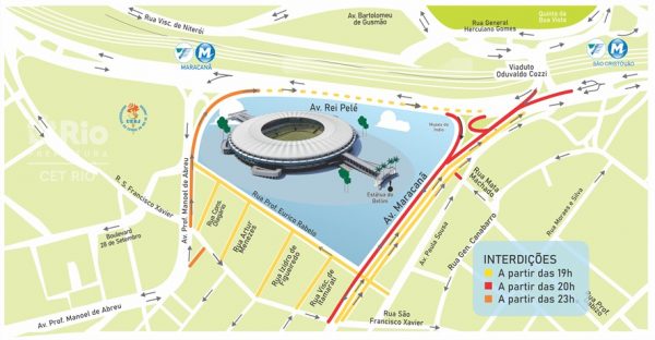 O efetivo da CET-Rio contará com 45 agentes e apoiadores de tráfego, seis veículos operacionais e 12 motocicletas, que estarão empenhados na orientação do trânsito. Onze painéis de mensagens variáveis informarão sobre os horários dos fechamentos e as rotas alternativas. Todo esse conjunto é em favor da segurança viária, fluidez do trânsito, manutenção dos cruzamentos livres, como também na orientação dos pedestres, torcedores e motoristas.