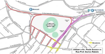 O acesso de veículos de moradores do entorno imediato ao Maracanã (ruas Prof. Eurico Rabelo, Visconde de Itamarati, Isidro de Figueiredo, Artur Menezes e Conselheiro Olegário) será feito, exclusivamente, pela Av. Paula Sousa e a Rua Prof. Eurico Rabelo, mediante apresentação de comprovante de residência.