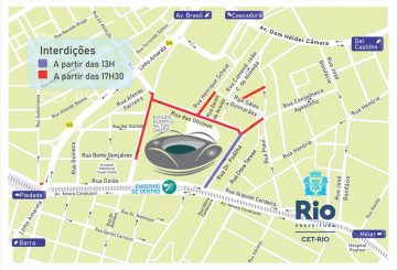 O entorno do Estádio Nilton Santos terá interdições para o jogo do Botafogo - Arquivo/Prefeitura do Rio A CET-Rio implantará planejamento de trânsito, neste domingo (18/2), para o jogo entre Botafogo e Vasco da Gama, que acontece às 16h, pela 9ª rodada do Cariocão 2024, no estádio Nilton Santos, no Engenho de Dentro. A partir das 13h, haverá interdição ao trânsito de veículos na região onde acontece a partida. É importante que todos fiquem atentos e respeitem as orientações dos agentes de trânsito e as sinalizações.