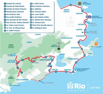 O evento ciclístico terá início às 6h de domingo (25/6), no Aterro do Flamengo, na altura da Marina da Glória, seguirá pela Enseada de Botafogo, Av. Princesa Isabel, Av. Atlântica, Rua Francisco Otaviano, Av. Vieira Souto, Av. Delfim Moreira, Av. Visconde de Albuquerque, Rua Marquês de São Vicente, Rua Jardim Botânico, Rua Pacheco Leão, Estrada Dona Castorina, Estrada da Vista Chinesa e Estrada das Canoas. Os atletas retornarão para o Aterro do Flamengo, pelas mesmas vias. Posteriormente, darão duas voltas no trecho Túnel Marcello Alencar, Av. Rodrigues Alves (retorno), Aterro do Flamengo, Enseada de Botafogo (retorno). O término da prova também se dará no Aterro do Flamengo, na altura da Marina da Glória.
