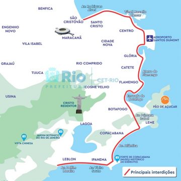 Para minimizar os impactos da intervenção e viabilizar o acesso ao Leme e à Urca, uma faixa reversível será montada. Os veículos deverão percorrer a seguinte rota no domingo (30/7), das 5h às 10h: