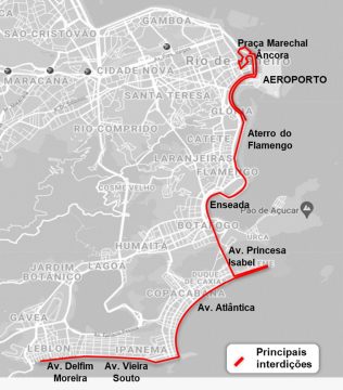 – Avenida Infante Dom Henrique, em ambos os sentidos, no trecho correspondente à Área de Lazer do Aterro do Flamengo.