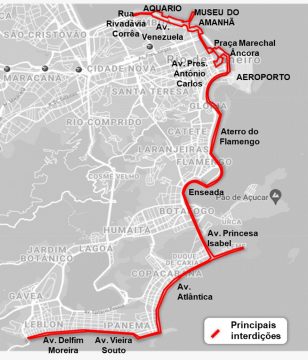 – Avenida Rio Branco, entre a Praça Mauá e a Rua Visconde de Inhaúma;