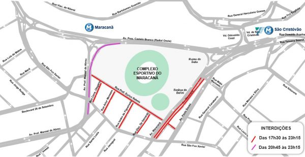 Maracanã será palco de jogo do Fluminense, pela Copa Sul-Americana - Divulgação A CET-Rio montou um esquema especial de trânsito para o jogo entre Fluminense e Oriente Petrolero, nesta quarta-feira (6/4), às 19h15, no Maracanã, pela Copa Sul-Americana. Para atender ao evento, diversas vias no entorno do estádio serão interditadas: