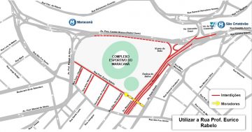 O acesso de veículos de moradores do entorno imediato ao Maracanã (ruas Prof. Eurico Rabelo, Visconde de Itamarati, Isidro de Figueiredo, Artur Menezes e Conselheiro Olegário) será feito, exclusivamente, pela Rua Prof. Eurico Rabelo, mediante apresentação de comprovante de residência.