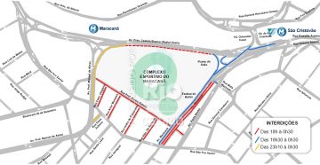 O trânsito no entorno do estádio do Maracanã terá interdições - Arquivo/ Prefeitura do Rio A CET-Rio montou uma operação especial de tráfego para o jogo entre Flamengo e Corinthians que ocorrerá nesta quarta-feira (2/11), às 21h30, no Maracanã. Serão feitas as seguintes interdições: