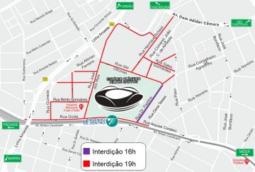 As seguintes vias serão interditadas para viabilizar a chegada e saída das pessoas para o evento: