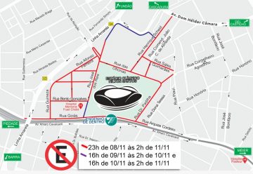 Para garantir a chegada e saída do público do evento com segurança e garantir boa fluidez do tráfego na região, será necessário proibir o estacionamento em diversas vias da região.