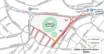 O acesso de veículos de moradores do entorno imediato ao Maracanã (ruas Prof. Eurico Rabelo, Visconde de Itamarati, Isidro de Figueiredo, Artur Menezes e Conselheiro Olegário) será feito, exclusivamente, pela Rua Prof. Eurico Rabelo, mediante apresentação de comprovante de residência.