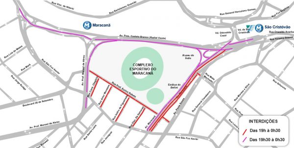 O acesso de veículos de moradores do entorno imediato ao Maracanã (ruas Professor Eurico Rabelo, Visconde de Itamarati, Isidro de Figueiredo, Artur Menezes e Conselheiro Olegário) será feito, exclusivamente, pela Avenida Paula Sousa e a Rua Professor Eurico Rabelo, mediante apresentação de comprovante de residência.
