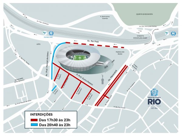 CET-Rio preparou esquema especial de trânsito para jogo no Maracanã - Marcos de Paula/ Prefeitura do Rio A CET-Rio montou um esquema de trânsito para o jogo entre Fluminense e Ceará, nesta quarta-feira (29/10), às 19h, no Maracanã, pelo Campeonato Brasileiro. A partir das 17h30 haverá interdições ao tráfego de veículos na região do estádio. E, além dos locais regulamentados com proibição de estacionamento, outras vias estarão restritas a partir das 10h.