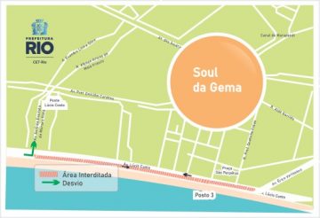 – Veículos procedentes da Avenida Lúcio Costa, sentido Avenida Érico Veríssimo, deverão seguir pela Avenida Lúcio Costa, utilizar o retorno próximo ao Posto 7, Avenida Lúcio Costa, Avenida Ayrton Senna, Trevo das Palmeiras, Avenida das Américas, Avenida Afonso de Taunay e, em seguida, acessar a Avenida Érico Veríssimo e a Avenida Lúcio Costa.