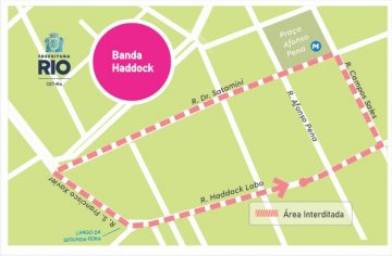 Trecho entre a Rua Prudente de Morais e a Rua Visconde de Pirajá, junto à Praça General Osório, até às 16h, durante a concentração do bloco;