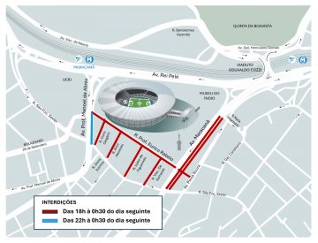 O planejamento de trânsito contará com agentes da CET-Rio e apoiadores de tráfego, veículos operacionais e motocicletas, que estarão empenhados na segurança viária, fluidez do trânsito, manutenção dos cruzamentos livres e na orientação dos pedestres, torcedores e motoristas. Como reforço das informações do tráfego, 13 painéis de mensagens variáveis informarão sobre os horários dos fechamentos e as rotas alternativas.