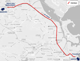 -Veículos provenientes da Rua Santos Lima/Av. Brasil, pista Lateral, com destino à Av. Rodrigues Alves/Túnel Marcello Alencar: o acesso à pista Central da Av. Brasil será feito pela agulha localizada após a Rua Santos Lima. Posteriormente, os veículos deverão manter-se à esquerda para seguir em direção ao destino.