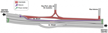 · Interdição TOTAL da Av. Brasil, pista Central, sentido Deodoro, entre a Passarela 4 e o canteiro de obras próximo a Rua Prefeito Júlio de Moraes Coutinho.