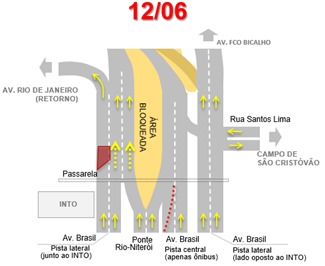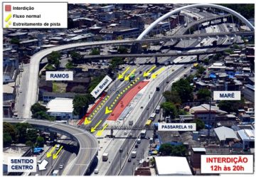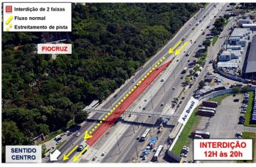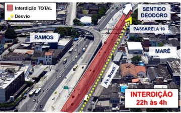 • 12/06, das 22h às 4h: interdição TOTAL da pista central, Sentido Deodoro.