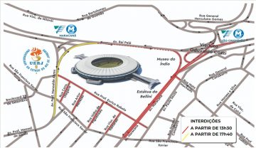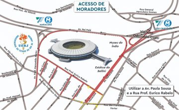 O acesso de veículos de moradores do entorno imediato ao Maracanã (ruas Prof. Eurico Rabelo, Visconde de Itamarati, Isidro de Figueiredo, Artur Menezes e Conselheiro Olegário) será feito, exclusivamente, pela Av. Paula Sousa e pela Rua Prof. Eurico Rabelo, mediante apresentação de comprovante de residência.