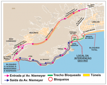Moradores e hóspedes de hotéis da região da Avenida Niemeyer no trecho interditado, farão o acesso (entrada e saída), utilizando preferencialmente as seguintes vias: