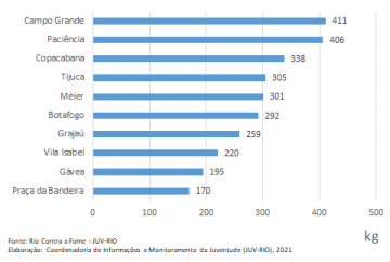 A Rio Contra a Fome já arrecadou 60 toneladas desde o seu início, em abril, e continua recebendo doações em todos os pontos de vacinação municipais. Confira abaixo a lista de bairros que mais receberam alimentos no período de 05/06/2021 a 05/07/2021.
