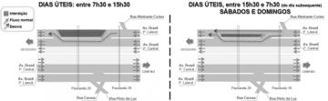 Entre às 8h de quarta-feira (29/07) e 14h de sábado (01/08) a operação para construção da rede de drenagem da Av. Brasil, altura da Passarela 19, será continuada. Para viabilizar o procedimento, 1 faixa da pista Central da Av. Brasil, sentido Deodoro, será parcialmente interditada e a agulha da pista lateral para a central será bloqueada. Para minimizar os impactos no trânsito, a pista lateral, que hoje encontra-se em obras, será totalmente liberada às 4h de quarta-feira (29/07).