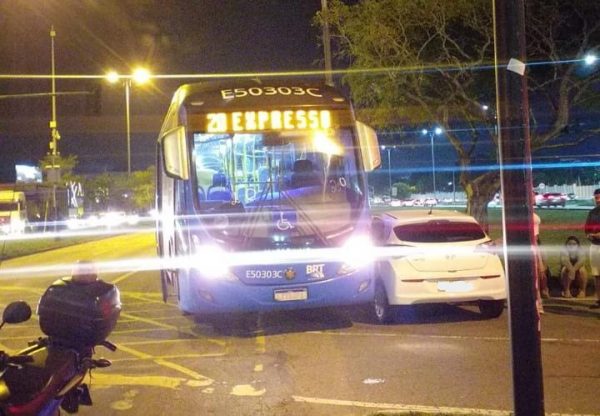 Conversão proibida provoca acidente com BRT no Recreio dos Bandeirantes