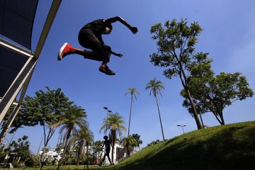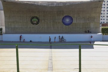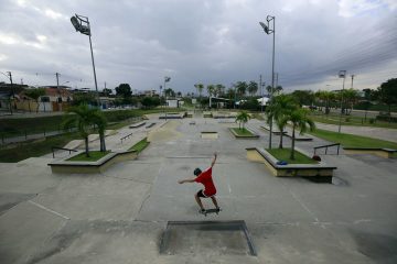 O espaço conta com quadras poliesportivas e pistas de street skate
