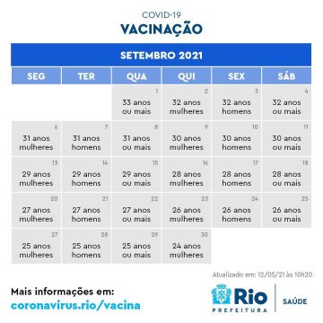 Seringa para vacina contra a Covid-19 - Marcelo Piu / Prefeitura do Rio Confira aqui os novos calendários de vacinação contra a Covid-19. A previsão é imunizar todos os cariocas acima de 18 anos até outubro, se não houver atraso na entrega das doses.