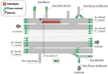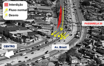 Os veículos deverão seguir pela Av. Brasil até a Rua Pedro Jório, acessar a Rua Vitor Frond e seguir pela Av. Pastor Martin Luther King Júnior até Colégio para fazer o retorno e seguir no sentido Pavuna.