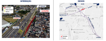 Entre segunda-feira (24/08) e o dia 29/08, das 21h às 5h (do dia subsequente): interdição de 2 faixas da pista lateral (lado direito), sentido Deodoro;