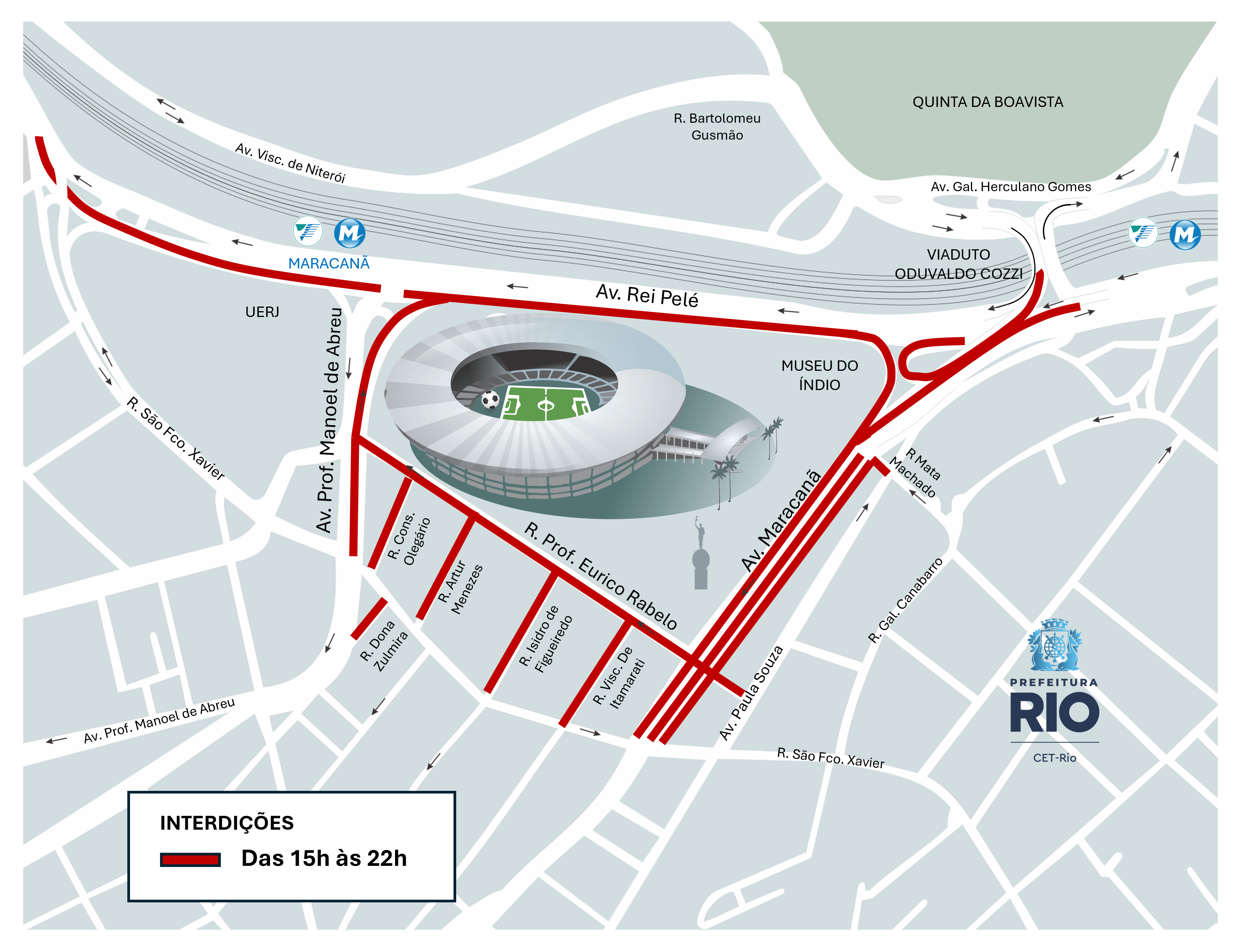 Fluminense x Flamengo: CET-Rio realiza interdições para partida no Maracanã