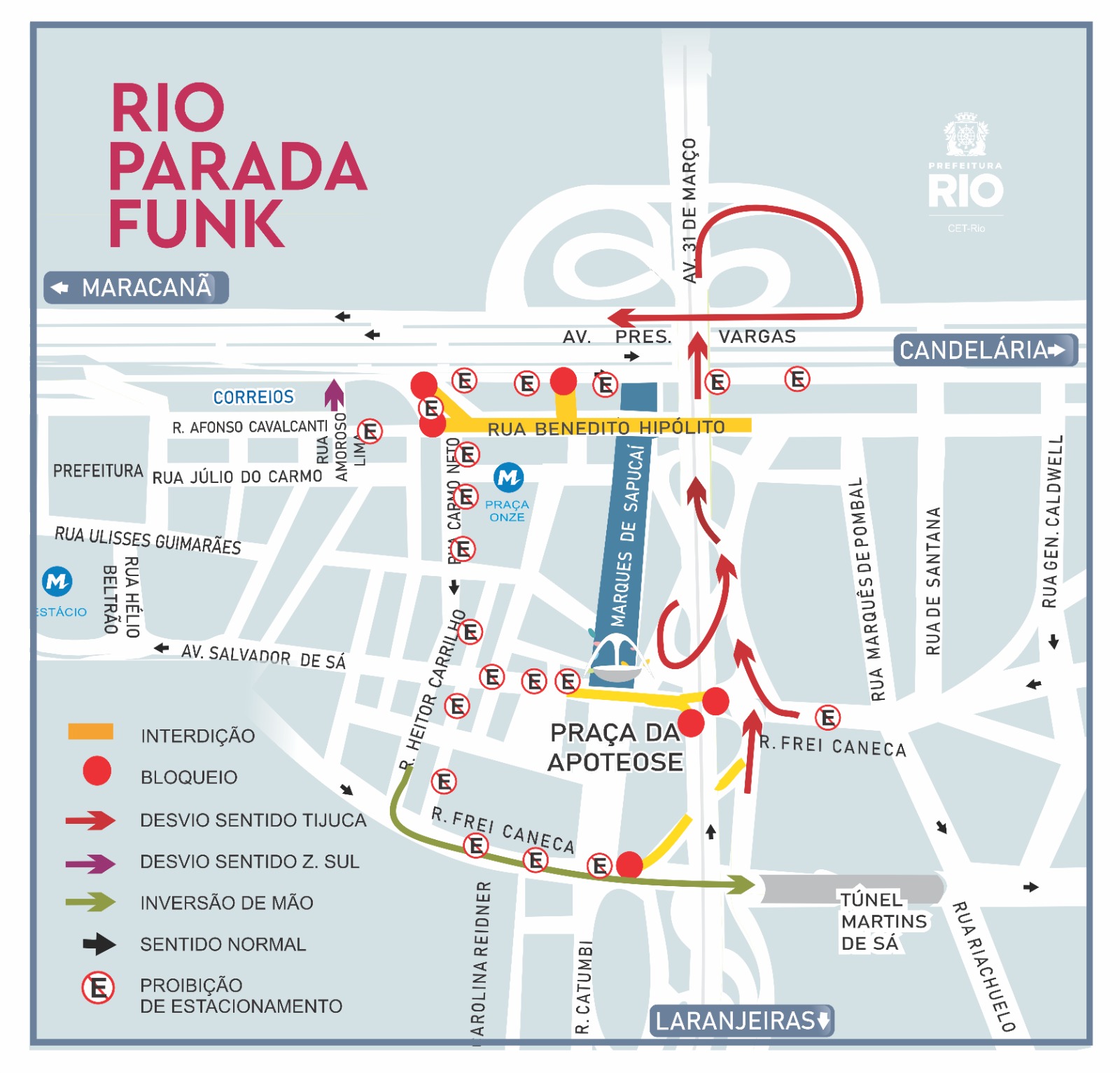 Sambódromo e vias do Centro terão esquema especial de trânsito para Rio Parada Funk
