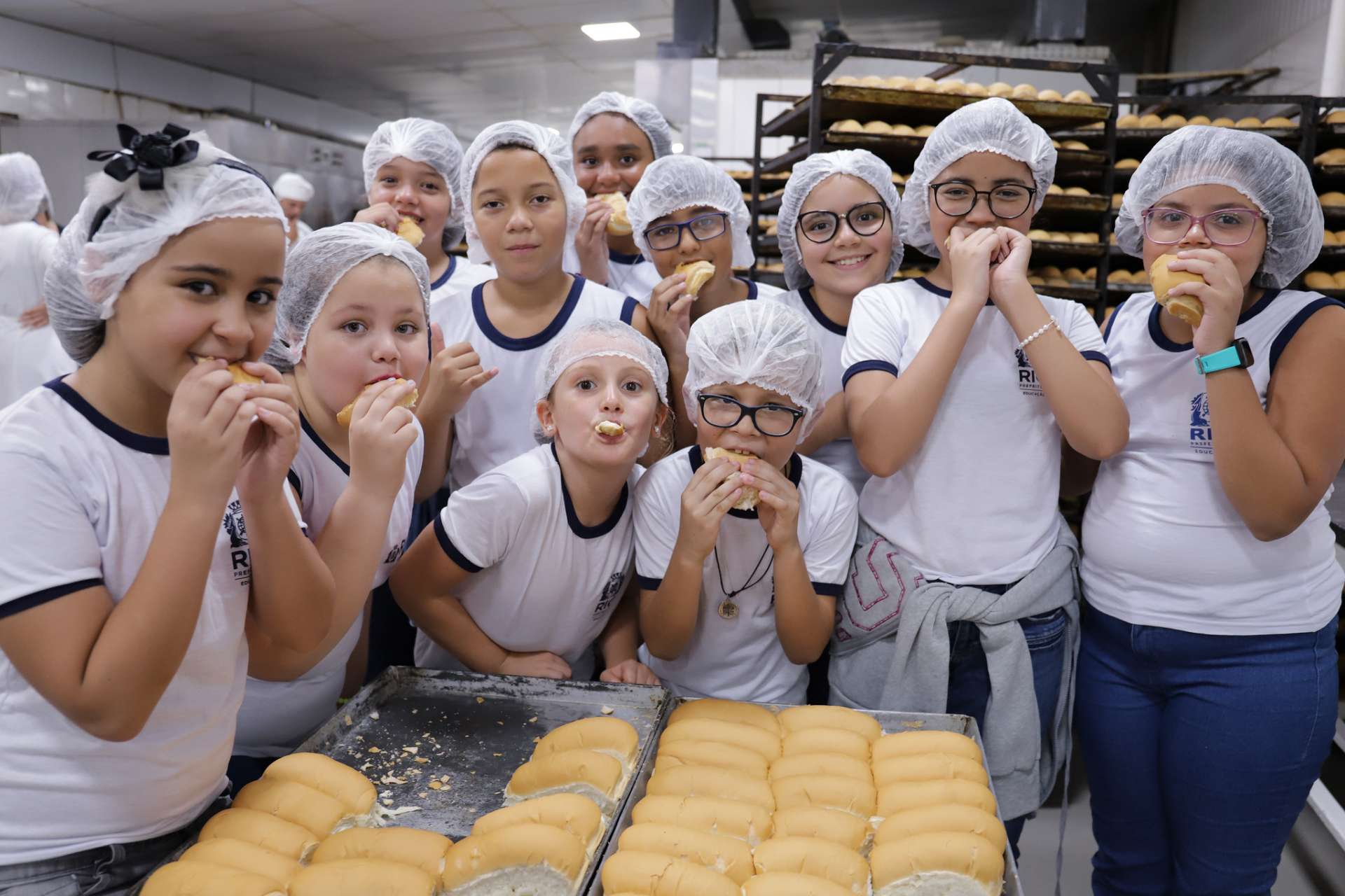 Alunos da Escola Municipal Júlio Verne visitaram a fábrica e puseram a mão na massa - Foto: Renee Rocha/Prefeitura