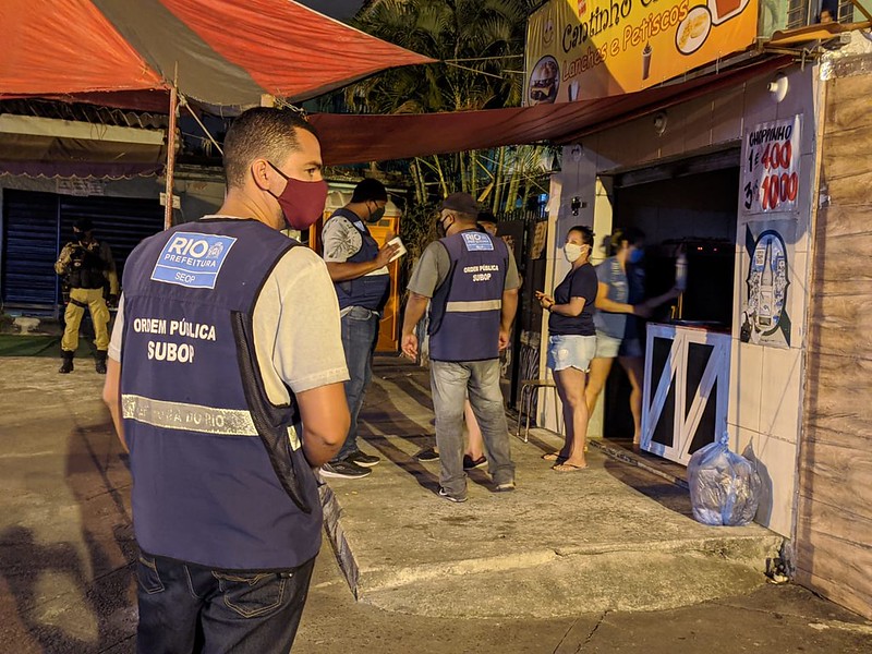 É a terceira operação coordenada pela Seop no local neste mês. Foto: Divulgação A Prefeitura do Rio, por meio da Secretaria Municipal de Ordem Pública (Seop), fechou 16 estabelecimentos e impediu a atividade irregular de oito ambulantes, em ação conjunta na noite desta sexta-feira, 26/06, no Ponto Chic, em Padre Miguel, na Zona Oeste. Esta é a terceira operação noturna coordenada pela Seop (com a participação de outros órgãos municipais e a Polícia Militar) no local, neste mês, após denúncias de aglomeração. Durante a fiscalização voltada ao enfrentamento da pandemia do novo coronavírus, os agentes identificaram ainda 49 estabelecimentos fechados e seis autorizados em funcionamento ao longo da Rua Figueiredo Camargo.