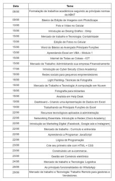 Mercado de trabalho e empreendedorismo são alguns dos temas principais abordados nos cursos, voltados para pessoas que buscam abrir seu próprio negócio ou gerenciar um já existente. Além desses, há cursos de fotografia e edição de imagem, TI e cursos profissionalizantes da Cisco.