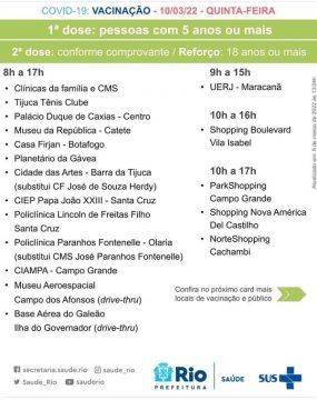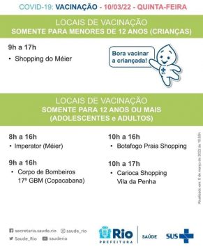 Vacinação contra a Covid segue na cidade - Fabio Motta/Prefeitura do Rio Todas as pessoas com 5 anos ou mais podem receber a primeira dose da vacina contra a Covid-19 nesta quinta-feira (10/03).