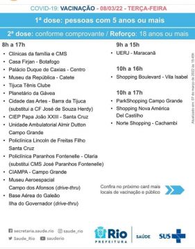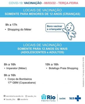Vacinação contra a Covid segue na cidade - Fabio Motta/Prefeitura do Rio Todas as pessoas com 5 anos ou mais podem receber a primeira dose da vacina contra a Covid-19 nesta terça-feira (08/03).