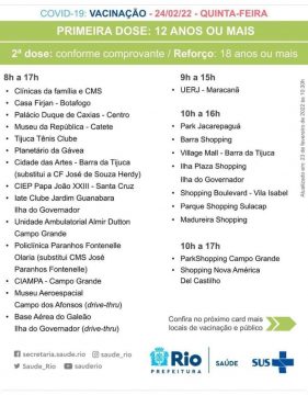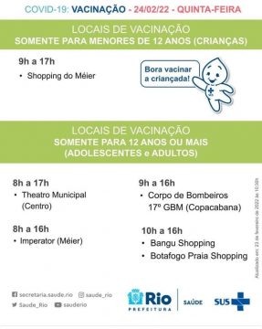 Vacinação contra a Covid-19 - Edu Kapps / Prefeitura do Rio Todas as pessoas com 5 anos ou mais podem receber a primeira dose da vacina contra a Covid-19 nesta quinta-feira (24/02).