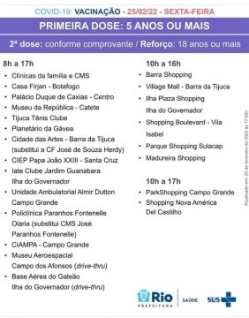 Vacinação no Rio - Divulgação / Prefeitura do Rio Todas as pessoas com 5 anos ou mais podem receber a primeira dose da vacina contra a Covid-19.