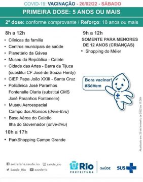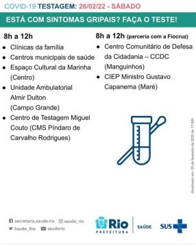 Testagem para Covid-19 - Edu Kapps / Prefeitura do Rio Todas as pessoas com 5 anos ou mais podem receber a primeira dose da vacina contra a Covid-19 neste sábado (26/02).