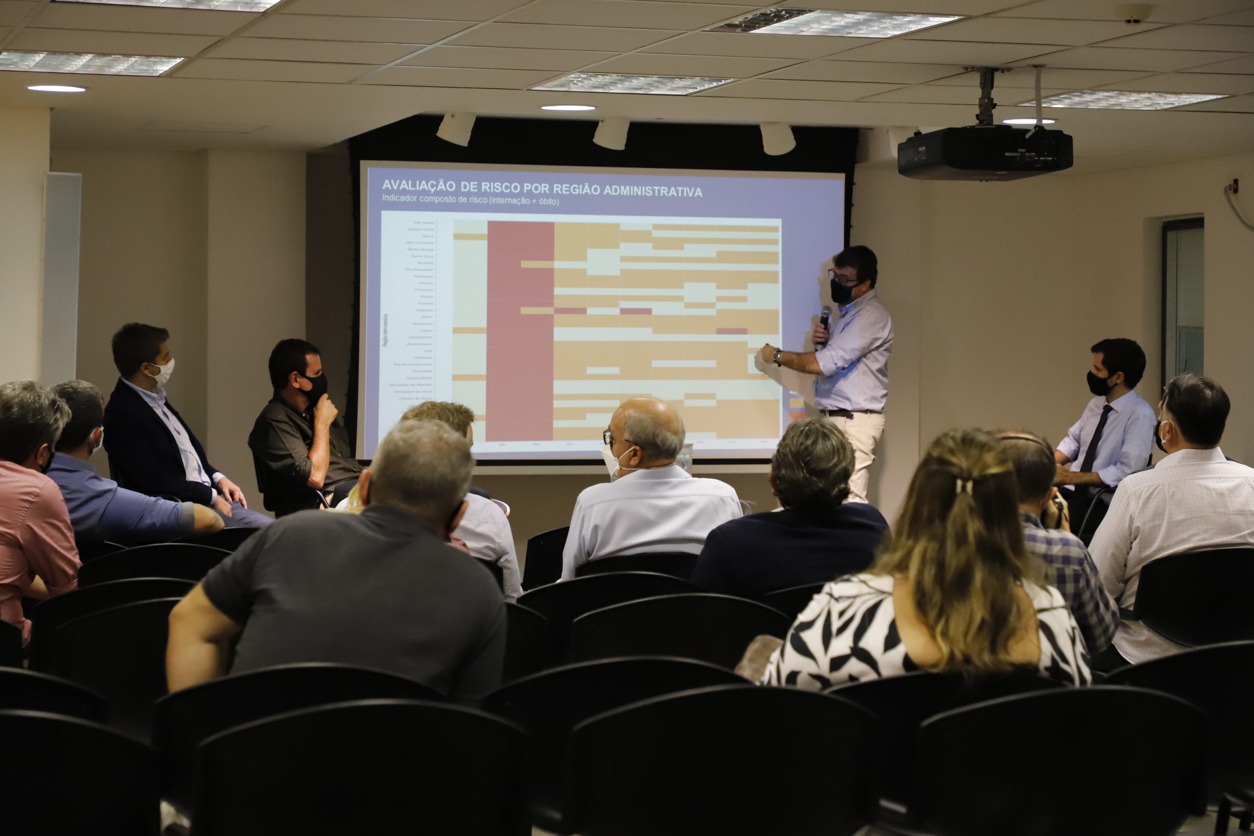 Participaram da reunião os secretários de Desenvolvimento Econômico, Inovação e Simplificação, Chicão Bulhões, de Saúde, Daniel Soranz, e de Ordem Pública, Brenno Carnevale, além de representantes do setor econômico.