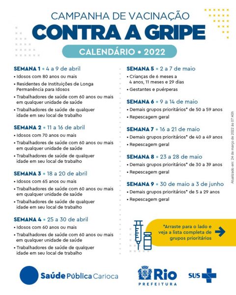 Confira abaixo o calendário 2022 e os grupos prioritários: